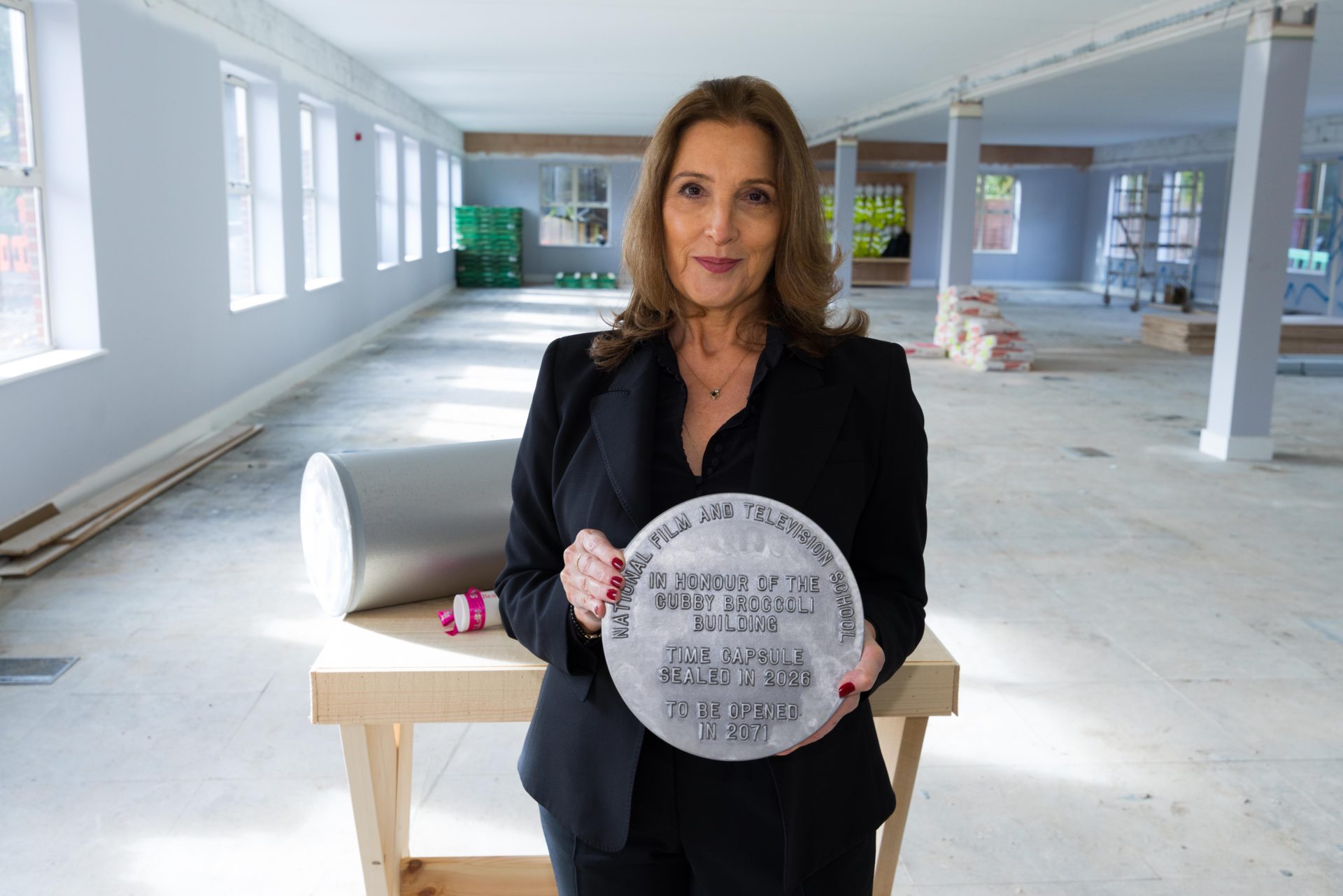 Barbara Broccoli and Michael G. Wilson contributed to a specially commissioned time capsule to be placed within the foundations of the new building with a letter addressed to future NFTS Producing students. The capsule will be re-opened in 2071, to celebrate the School’s centenary, and also contains a document from the NFTS archives, detailing Cubby Broccoli’s financing of its Production and Facilities department in 1986, a generous donation that reflected his enduring belief in the importance of creative infrastructure and the filmmakers it continues to support.